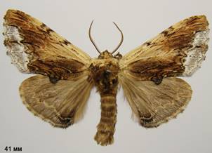 ↙ Ôîòîãðàô³ÿ öüîãî æ ìåòåëèêà íà ÷îðíîìó òë³ Ptilodon cucullina